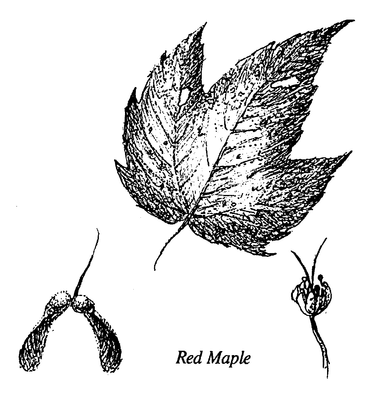 Red maple has the most extensive north/south distribution of any tree species along the east coast and is easily recognized by reddish coloring during all seasons. In early spring, the newly emerging growth gives the tree, or an entire landscape, a pink-red glow. Red buds gradually open to delicate red flowers, which form clusters of bright red-winged fruits known as samaras. Like all maples, the leaves and branches grow opposite each other, but red buds and twigs distinguish it from other maples. The early colonists extracted a dye from the bark.