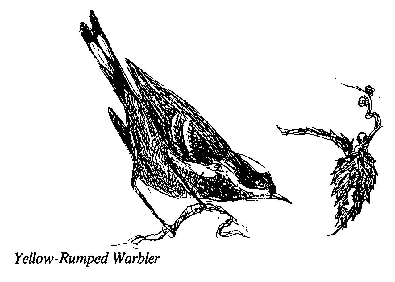 As the trail turns inland, away from the pond and up the hill, you may see and hear migrant and resident songbirds that nest in the sanctuary during the breeding season between late April and July, including Gray Catbird, Eastern Towhee, and Black-capped Chickadee. Species of warblers that breed here include the Yellow Warbler, Common Yellowthroat, and American Redstart. These insectivorous birds overwinter in Central and South America. In winter, listen for the high-pitched trills of Golden-crowned and Ruby-crowned Kinglets, small songbirds that migrate southward from breeding grounds in the northern coniferous forest. During winter, they seek tiny eggs and freeze-dried caterpillar carcasses in the tree canopy, limbs, and trunks. White-throated Sparrow, Dark-eyed Junco, Purple Finch, and other northern seed-eating species also overwinter here.