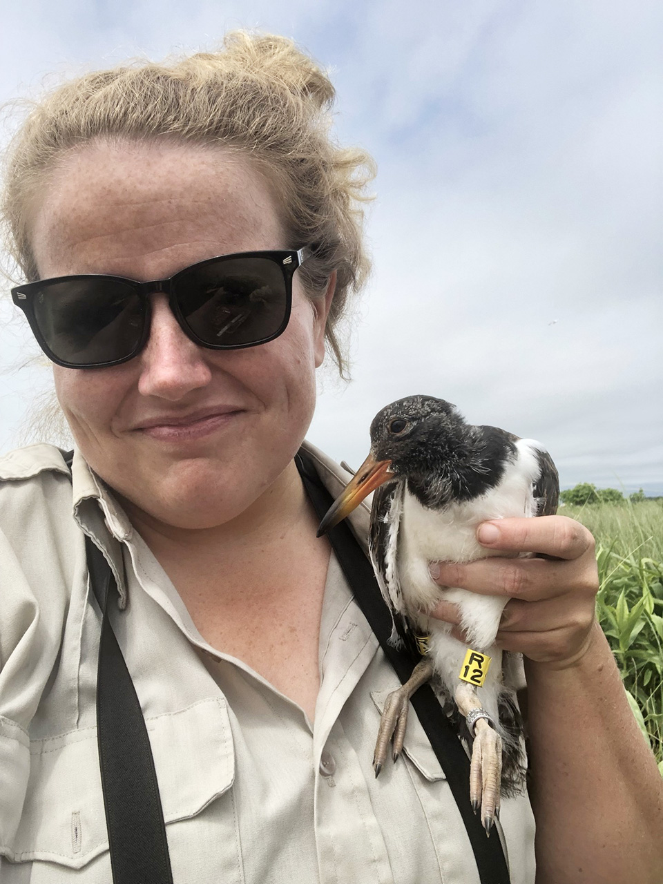 Maureen Durkin with juvenile oystercatcher